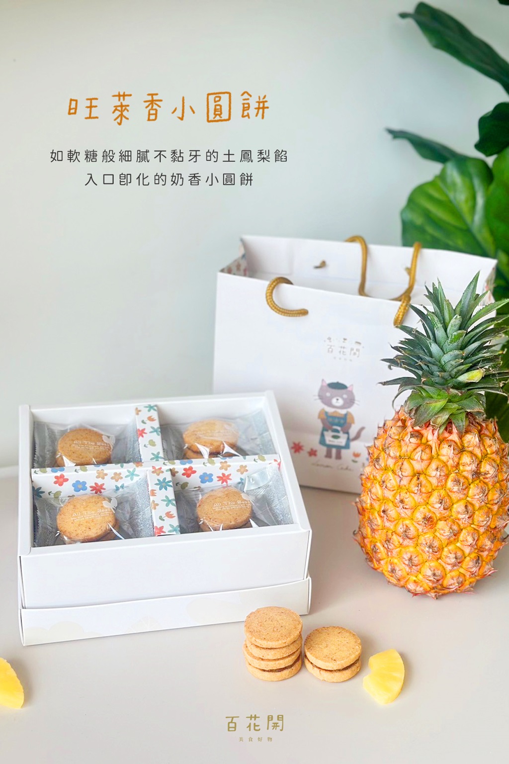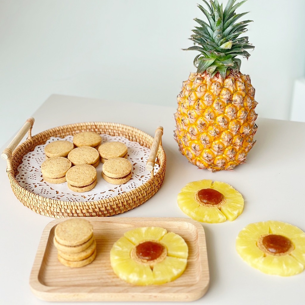 內餡選用二號土鳳梨,剛好的酸甜加上特有的果肉纖維口感製成Q軟不黏牙的內餡